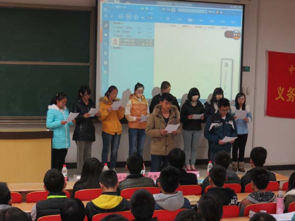 活动最开始由主持人介绍到场的来宾,并且宣布感恩文化节开幕式正式开始。随后指导老师姚凯奇上台分享了自己关于感恩的看法,以及人们为什么要感恩,如何感恩,并且与在场的服务分队的学生交流各自的观点认识。接下来服务总队的同学为大家带来感恩诗朗诵节目。节目过后主持人邀请了几位同学上台分享自己生活中一些关于感恩的小故事。最后,服务队的志愿者们在“感恩你我,与爱同行”的横幅上签下了自己的名字,感恩文化节开幕式取得圆满成功。