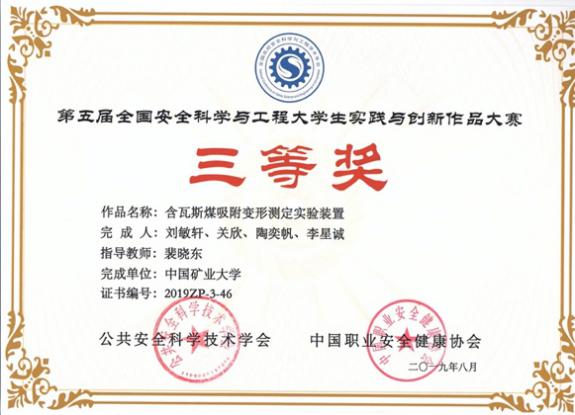 依托安全学科双一流建设平台,先后参与及主持各类创新训练项目共5项,其中国家级2项、省级项目(考核为优秀)1项,个人主要从事《泡沫活性剂水基泡沫排液规律与性能评价模型》、《连续气相色谱法浓缩低浓度瓦斯》、《基于指标气体浓缩的煤自燃提前预报》等方面的研究,并已取得相当成果。参加第五届全国高校安全科学与工程大学生实践与创新作品大赛,取得全国三等奖。