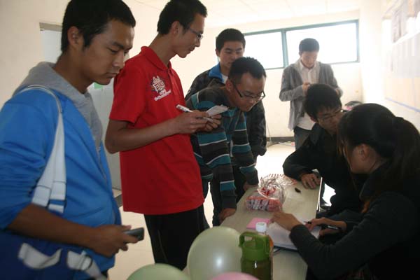 比赛开始前,谜语墙前早已引来众多同学们的围观。谜语种类繁多,由不同颜色的贴纸将其区分,谜底也多种多样,有竞猜一个字的,有猜一个成语的,还有动植物类的。中午11时,比赛正式开始。同学们参与的热情十分高涨。在梅二七楼,大一新生们不顾饥饿,兴趣不减地参与猜谜,整个七楼笼罩在浓浓的猜谜热情中。而在梅三大厅,活动氛围更是分外浓烈。参与的人或蹲着,或站着,都在埋头认真地思考,甚至有同学为了答对一道题,竟然在地上蹲了足足20多分钟。整个比赛过程中,现场气氛都十分活跃。下午1点30分,比赛落下了帷幕。最终,来自第一赛区的安全12-3班的张鹏飞同学和第二赛区的安全11-3班张城铭同学分别以猜对28题和猜对24题成为两个赛区的冠军。