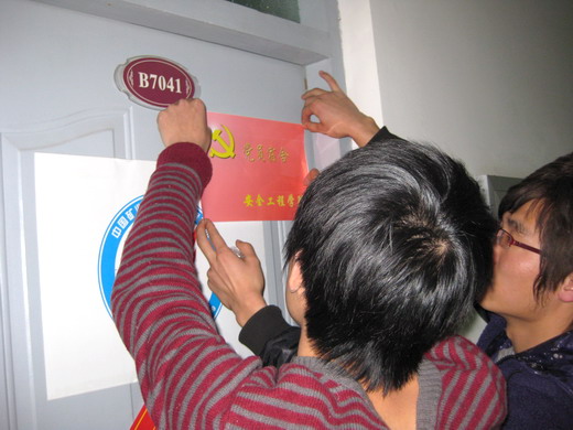 党员工作站为近期吸收的党员们举行了党员宿舍挂牌仪式,首先,大家先就活动意义进行了探讨――“学生党员宿舍”的牌子时刻提醒着学生党员要努力做好同学们的榜样,在创先争优活动中抓紧专业学习,加强理论学习,发挥前进模范作用,真正做到“五好,五带头”,并用自己的实际行动带动身边的同学,努力创建和谐先进宿舍。