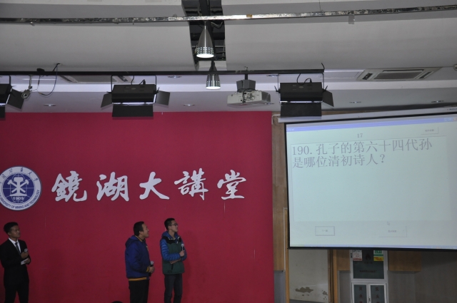 晚上7点,比赛正式开始。比赛开始后,首先由演讲与主持协会的主持人讲述规则。此次复赛实行淘汰制,总共分为两轮:分别是64强进32强,32强进16强。在所有人签到完毕之后,每两人一组进行PK,每道题有30秒的思考时间,若超过时间仍未给出答案即视为放弃该题,答题过程中每人有两次求助机会和两次回答错误的机会。赛场上的同学们牢牢把握住30秒的时间,竭尽全力完成每一道题目。