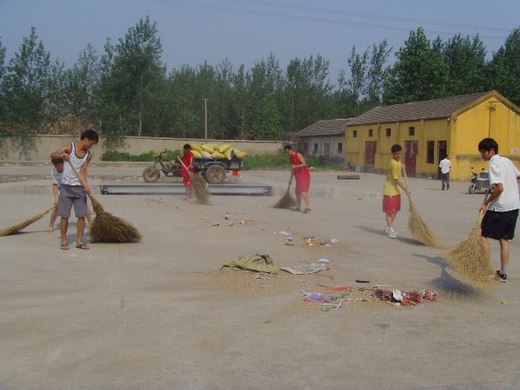 上午九点,实践团成员在李成刚老师的带领下来到徐州市毛六村的农场,他们将农场的杂物收拾进仓库,帮助公司员工搬运种子,并对农场进行打扫。七月的天气里,天气十分炎热,但同学们不怕脏不怕苦不怕累,将清扫的垃圾装车运到不远处的垃圾站。