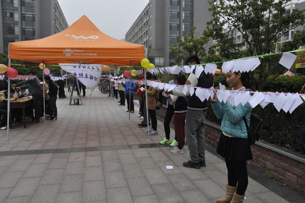 心理自助中心的同学也热情的为过往的同学介绍参与方式及大赛流程,有越来越多的同学获得了奖品,大家都井然有序的选择自己会的谜语,有很多同学猜中了四十个以上的谜语之后仍然满怀热情地继续猜,活动现场异常火爆。在下午一点时,活动宣布结束,有许多同学恋恋不舍的离开了猜谜现场,并表示活动很有意义,以后希望还有这样的大赛。下午一点半,各学院心理自助中心的同学打扫完现场,有序离开,本次谜语大赛至此圆满结束。