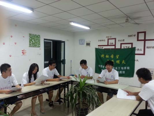 会议主要针对前期开展的活动,活动的收获以及活动中遇到的问题而进行讨论。实践团负责人王李主持了此次会议。首先,王李将事先整理好的材料分发到各成员手中。材料涵盖了前期所有工作的内容。稍作整理之后,王李对前期的工作包括进村调研、为村上的孩子做功课辅导、对孩子们进行文体培训以及视察村里的状况等做了简要的总结。尽管前期的活动进行得较为顺利,然而活动中依然出现了种种的问题,例如,同村里孩子们的交谈尚未做到真正舒心,自身经济条件的限制以至于无法为孩子们购置一些课外读物。这些问题都是活动后期需要深思和解决的。在之后的时间里,实践团全体成员发起了群组讨论,彼此各抒己见。与此同时,针对后期需要完成的工作,成员们也做了相应的规划。