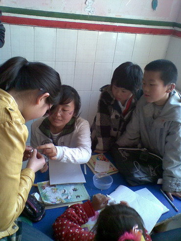 下午三点,安全09-1班十余名同学准时到达启聪学校门口,在学校老师的指引下,顺利来到学生教室,并得到聋哑儿童的热烈欢迎。在刘京京老师的安排下,安全09-1班一行十余人为大班的聋哑儿童进行辅导。其中几名有自闭倾向孩子怯生,不愿与人交谈,安全09-1班十余名同学主动教他们算数、组词、画画以及折纸等,并在刘京京老师的指导下对聋哑儿童有针对性进行辅导,在大家笑声的感染之下孩子们也渐渐融入其中。在临行之前,十余名同学帮孩子们打扫教室,让他们的生活、学习环境更加干净、漂亮。班长姜宁还将携带的100本作业本和20支铅笔交到了徐平校长的手中,希望孩子们能和其他健康孩子一样学习知识、快乐成长!徐校长也表达了对安全09-1班同学的谢意。