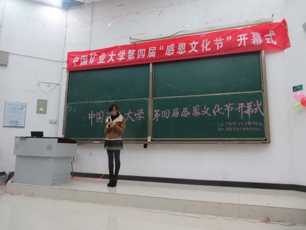 此次活动意在发扬“好学力行,求实创新,奉献社会”的矿大精神,提高大学生的人文素质,增强大学生的感恩意识。开幕式虽然结束了,但它为我们带来的精神食粮却足以使我们享用一生。我相信,安全学子们定将秉承感恩的良好传统,在感恩的道路上一起走到最后!感恩之路,我们同行!