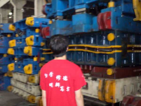 实践团走进生产车间后发现,偌大的车间内各种各样大型设备正在紧致有序地运行着。而实践团成员们今天的实践任务,就是着手操作车部件的轧制。车部件轧制由两个人和轧制车床来完成,通过将初期模具搬运到轧制车床上面之后,在激光传感器的引导下校正模具位置,在两边相对位置的工作人员同时按下启动按钮,来确保轧制的完成。此处设计以四个触电按钮同时按下作为启动信号,大大确保了工作人员的安全。