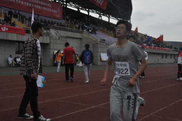 下午,第一运动场的比赛依旧如火如荼地进行着。安全学子中参加了男女400米决赛、男子5000米决赛、男子跳高和女子三级跳远项目。上午女子100米比赛中闯入决赛的马梦洋同学在决赛中奋力拼搏,取得了第八名的成绩,闯入男子800米决赛的吕行舟同学也较好的表现了自己的能力。另外,惟一参加男子跳高的傅嘉石同学和女子三级跳远的付艳晴同学均遗憾折戟于第一轮。