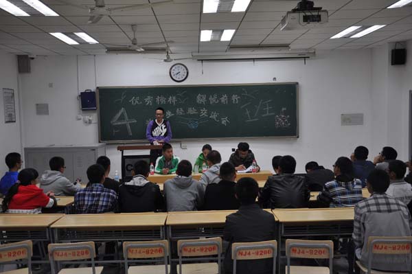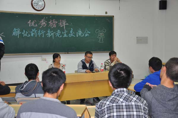 创业协会主办的“新老生经验交流会”在教四顺利举行,来自大二、大三、大四的优秀学生代表作为嘉宾参加了本次经验交流会,向13级新生们传授了学习、生活方面的经验。