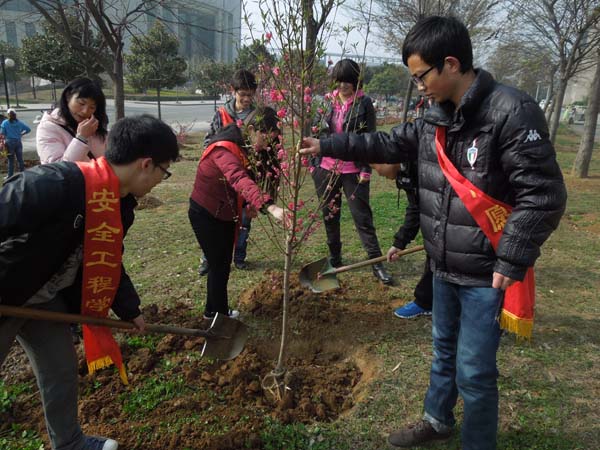 刚到活动现场,同学们便都摩拳擦掌,迫不及待地想要开始工作。孙婷老师向大家大致介绍了植树的步骤,随后大家根据安排分成几组,分别进行挖坑、放树、填土、浇水的工作。刚开始挖坑的时候,大家都觉得有些吃力。但经过几次试验之后,大家便掌握了挖坑的方法和技巧,做起来更加得心应手,速度也提高了很多。在放树、填土的过程中,大家两人合作,一人扶正树苗,一人填土,配合默契,很快就看到了一棵棵栽种好的小树苗。几分钟后,负责浇水的同学则向树苗底部浇入适量的水,以确保树苗能够成活。9点30分,活动结束了,虽然天气有些寒冷,但大家仍然干劲十足,忙的满头大汗。看着面前的劳动成果,大家脸上都露出了欣慰的笑容。
