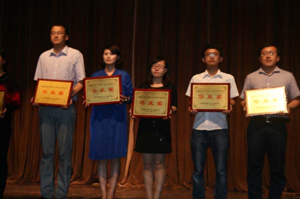辅导员孙婷代表学院上台领奖,校党委副书记曹德欣为其颁发奖状。闭幕式的最后,校广播剧社进行了名为《红玫瑰与白玫瑰》的汇报演出。到此, 2013年大学生文化艺术节闭幕式暨广播剧社年度大戏汇报演出圆满结束。