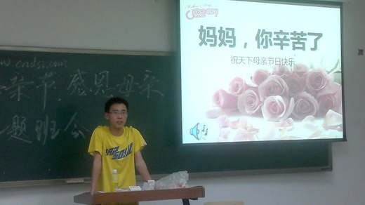 5月8日晚7:00,安全09-1班在教四C-209召开了“心系感恩,祝天下母亲节日快乐”主题班会。班会由班长姜宁主持,同学们通过不同的方式积极表达了自己对母亲的感谢和祝福。