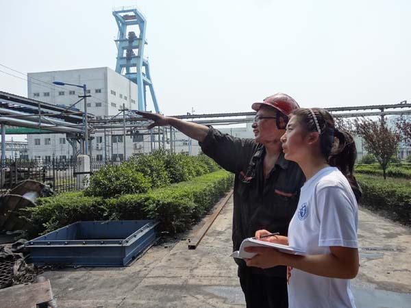 然后,李书记便带领梦之队队员进入今天参观的重点――煤矿生产工艺的整个流程,并安排梦之队副队长付艳晴对一位资历较深的矿工师傅进行简短的采访,工人师傅结合机械向队员们介绍配煤、筛煤、破碎、选煤、洗煤等主要流程,并重点跟队员们就那些大型机器的相关作用进行了介绍。最后,队员们与李书记一同前往职工食堂,了解工人的生活与饮食情况。