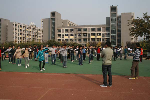 下午两点,经过体育部的六名部员点名确认164名同学到场后,体育部部长石础开始主持选拔。伴随广播操的音乐响起,164名同学列着整齐的队伍,开始做操。大家都跟随着音乐认真地把每一个动作做得规范、优美。很快,热身结束,正式的选拔开始了。辅导员杨洋老师在一旁仔细观察着同学们做操,经过仔细比较和考量,第一轮选拔共选出15名同学。“你们被选出来不是因为他们做的不好,而是你们比他们更优秀一点。你们要更加严格要求自己,为包子漫画