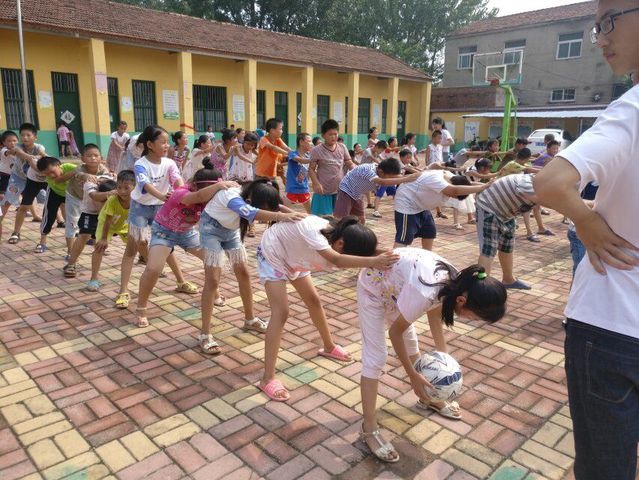 “仲夏希望”支教团在如期举办的趣味运动会中开展“海底捞月”比赛项目。