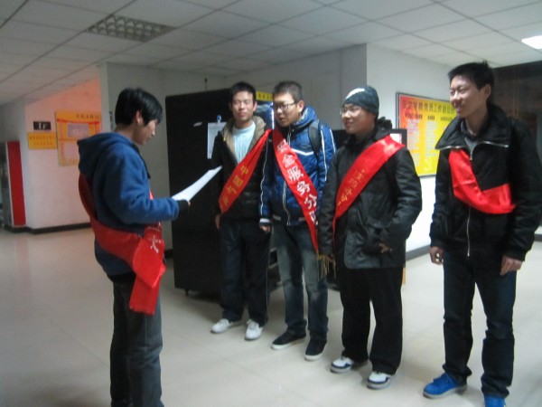 学院服务分队B组成员于8点55分在梅3大厅集合,由考核部负责点名以及考核,然后由组长方伦对上次检查进行总结,以及在考核过程中应该注意的事项,大约在9点钟左右,针对大一大二的晚自习检查正式开始,在检查过程中,宿舍状况良好,基本没有人员逗留,晚自习检查也达到了预期效果。