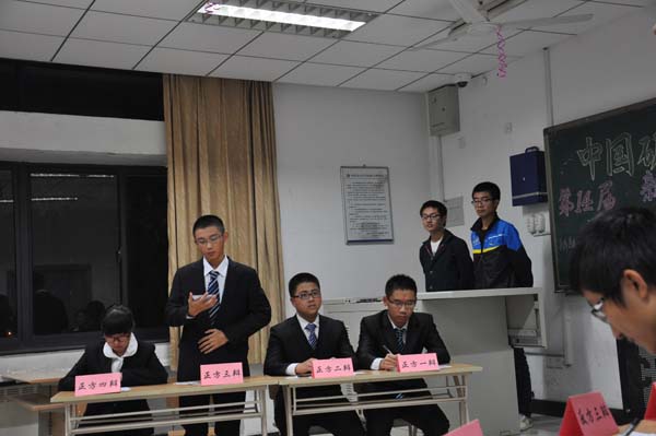 与材料学院对战的校级辩论会在这里成功举办。在参赛选手、评委以及观众纷纷就坐后,全场一片寂静,一场精彩绝伦的言辞角逐即将开始。
