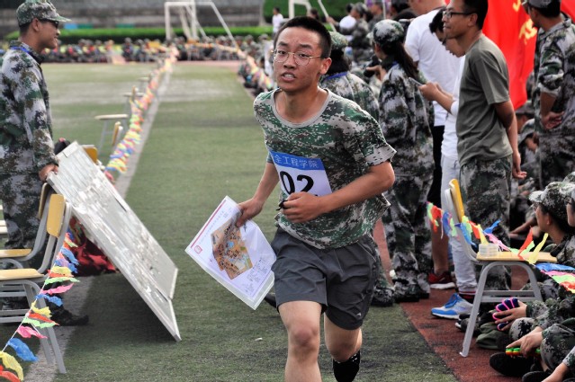 下午三点,比赛正式开始。本次新生军训定向越野比赛为接力制,先后进行百米定向赛与校园定向赛。参赛队员须按预先设计的路线,依靠自己的体力和智力,依序通过各检查点,并返回起跑点与下一名队员交接。在最后一名队员打过终点后,裁判组核对目标点,最终依次完成规定目标点打卡的队伍取得成绩,通过三人总计时间确定比赛名次。