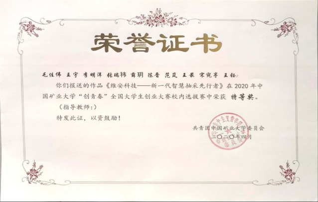 2019年参与了徐州市创业计划赛获得了:徐州市大学生创业计划大赛二等奖。