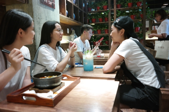 C吧准备摄影器材以及对取景点的选取,有条不紊的进行着准备工作,与此同时,结合到前两天的一些缺陷,例如路人过多影响拍摄等情况剧组人员先行进行了一次短小的会议,DREAM BIG 实践团的成员们对于微电影的拍摄越发驾轻就熟,并在早上九点正式开始了拍摄,不出意外地,拍摄进程一如既往的顺利,剧组人员都表示达到了自己所预想的理想效果,不出两个小时,剧组人员结束了C吧的第五幕。紧接着剧组人员马不停蹄的赶到了包子漫画