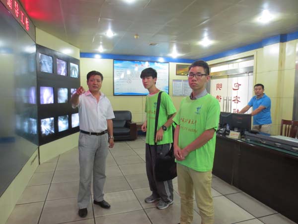 “矿山安全行”实践团队开始了山东省龙口北皂煤矿暑期社会实践的第一天:参观北皂煤矿的监控中心,了解北皂煤矿安全管理的具体流程和相关设备。
