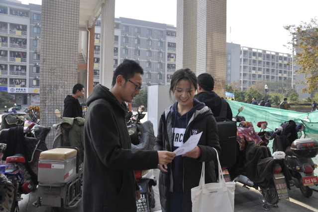 中午12点,宣传活动正式开始,早已集合好的宣传人员开始向过往的同学发放宣传海报,每当有同学驻足,宣传人员就向他们详尽地介绍活动的形式和注意事项,并表示参与活动不仅可以锻炼自己的书法水平,还有机会将自己的成果在公众号上展示出来。如果有同学想要更深入的了解信息,可以通过扫描二维码的形式了解活动的具体消息和比赛信息。通过这次宣传,有许多同学表达了对活动的期待,并表示愿意参加这种活动,得到锻炼自己书法的机会,现场气氛积极活跃。据悉此次活动的获奖作品将在各个学院公众平台进行推送。