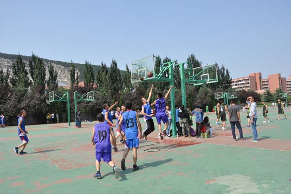 “新生杯”篮球赛在第三运动场如火如荼的进行着。此次比赛的队伍为安全1班对阵安全4班,消防一班对阵安全2班,安全3班对阵安全5班。