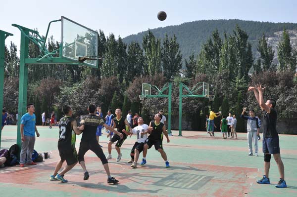 比赛开始前,第三运动场的篮球场地上满是安全14级新生们英姿飒爽的身影,他们蓄势待发,正抓紧时间进行热身练习。12点半,嘹亮悠扬的起哨声像炸弹般瞬间引燃起全场的热情,比赛准时开始。三个篮球场上的拉锯战进行的异常激烈,双方你追我赶,将持平不相上下之势推向白热化阶段。然而队员们丝毫不慌乱,他们沉着部署防线,伺机发动进攻,尽力赚得更多分数。他们灵敏的运球、躲闪、转球、投篮、进球……分数在频繁的哨声和同学们的掌声与欢呼声中渐渐拉开差距。与此同时,场外各班由女生组成的加油团也显示出了她们巾帼不让须眉的气势,她们那一阵高过一阵的呐喊声为本班男生队员增添了无穷动力。随着最终哨音的响起,这短暂又永恒的四十分钟在队员们手中划出的美丽的抛物线中圆满结束。最终安全3班以37:21分的巨大优势战胜安全五班,安全4班、消防1班分别以微小优势夺得胜利。