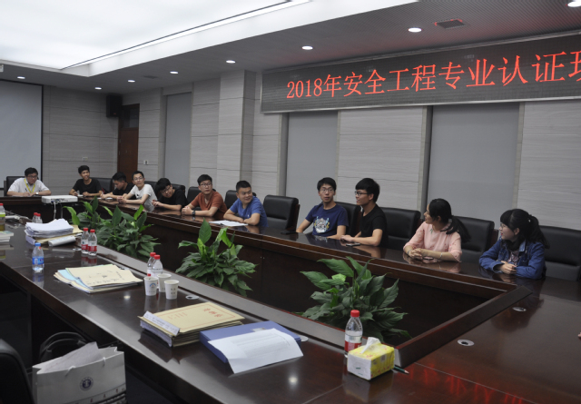 于矿科B412进行2018年专业认证现场考察座谈会。18名同学参与座谈会,会议由专家组成员主持。