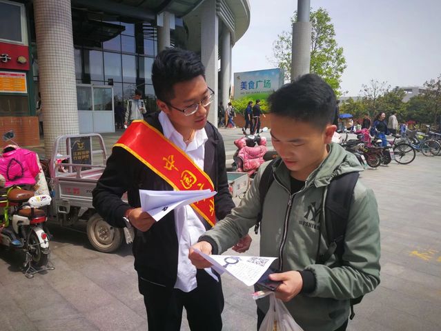 志愿者们在三食堂广场集合。由负责人简单分配任务并讲解宣传的要点与技巧后,宣传活动正式开始。志愿者们分散到自己分配的区域,向路过的同学们详细地介绍了“21天21件环保”活动的主要内容和活动规则,并讲述了此次活动的意义与目的,鼓励同学们积极参与到活动中来。来往的同学们都表示出了极大的兴趣,纷纷询问志愿者活动的具体方式,得到通过志愿者的细心讲解之后,同学们踊跃报名,同时表示会将“21天21件环保”活动向自己身边的同学宣传。