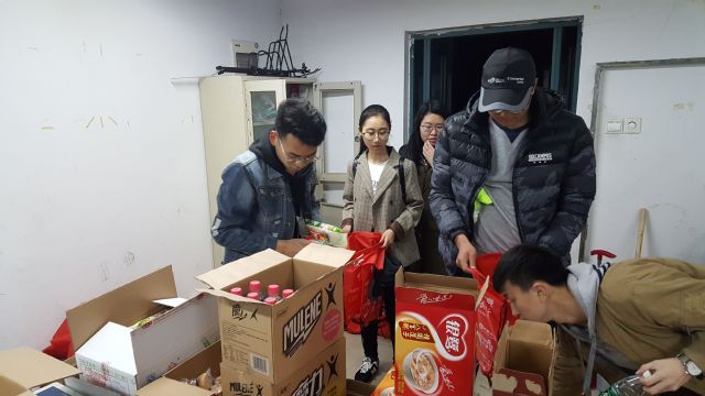 志愿者们始终认真听从安排,了解熟悉志愿者工作要求。志愿工作介绍结束后,志愿者们在梅三宿舍集合,进行分配物资。