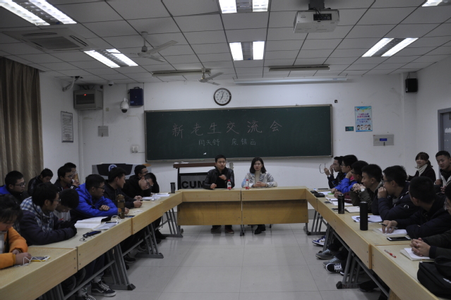 于博四B202、B203等教室召开新老生交流会。来自14级和15级的七名优秀学生作为主讲人出席交流会,17级全体学生参加交流会。
