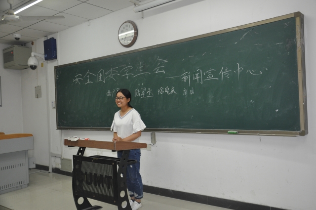 晚上7时整,参加面试的新生们准时到达面试地点在各面试教室有序就坐,面试正式开始。面试伊始,新生在台上作三分钟自我介绍并在黑板相应部门写下自己的姓名。然后,由面试官进行提问,进行两分钟的面试答辩。最后面试官根据自己部门具体情况和新生意愿进行评审录取,择日通知第一轮面试结果和第二轮面试的具体时间地点。在面试现场,报名新生满怀热情,极尽创新,向各面试官展现出了各自优秀的一面。有的诚恳直言,娓娓道来自己的优缺点,表达提升自我的渴望;有的绘图签名,并阐释其中的积极含义;有的能言善辩,对答如流;有的能歌善舞,多才多艺。各位面试官认真倾听,及时记录,并根据各部门的工作需求结合新生的具体情况进行提问和引导,并及时给予建议和鼓励。晚上9时,各部门面试工作接近尾声,各面试官整理材料,面试正式结束。