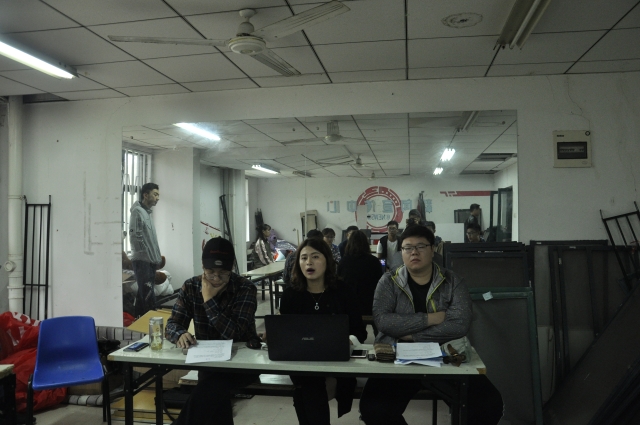 团委书记孙婷、辅导员刘世通、学生会主席孙一伟及各部门相关负责人对晚会各个表演节目进行了第一次审查。