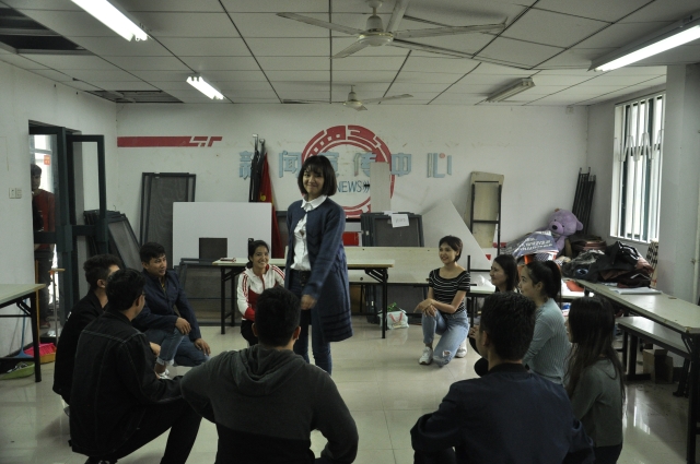 中午12点半,审查正式开始。各组节目表演的同学们按照晚会次序一一表演,都将自己调整到最佳状态,将自己最精彩的表现呈现给审查人员。在审查过程中,孙婷老师对各个节目分别给出了修改意见,其中她提醒舞蹈串烧表演的同学们注意表演时对音乐节奏和面部表情的把握。吉他弹唱的同学表演结束后,孙婷老师和刘世通老师又对他们的声线及他们所适合的歌曲给出了参考意见。表演结束,孙婷老师督促各节目负责人确定服装,并提醒学生会加紧安排并监督各次彩排,希望同学们在二审时能够呈现出不一样的表演效果。