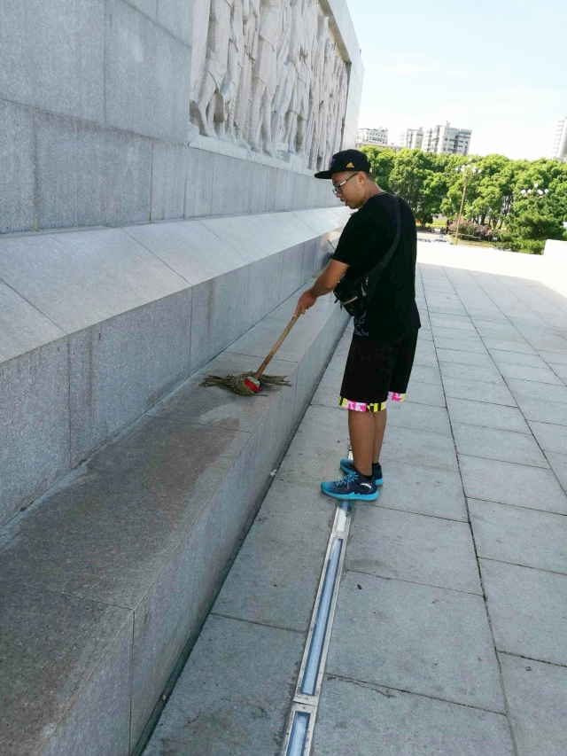 清晨六时许,团队成员来到八一广场。据悉,八一广场是历史文化名城南昌的中心广场,以八一南昌起义为主题。纪念塔是广场中的标志性建筑,塔身正面为“八一南昌起义纪念塔”铜胎鎏金大字。塔顶由一支直立的巨型“汉阳造”步枪和一面八一军旗组成。纪念塔造型雄伟挺拔,寓意明快深刻。随后,团队成员来到八一广场升旗台前参加升旗仪式,伴随着清晨的微风,迎风而展的国旗慢慢升到了旗杆的顶端,虽无国歌奏响,但强烈的民族自豪感洋溢在每个团队成员的内心。望着冉冉升起的国旗,成员们也体会到了祖国的日益强大和革命先辈一路走来的艰辛。升旗过后,成员们参观了广场上的其他建筑,并帮助清洁人员清扫南昌起义纪念塔,成员们体会到了工作人员的不易。