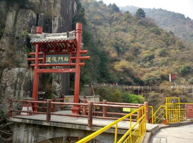 上午九点,团队成员抵达石门栈道风景区。根据导游介绍,这里既有水利工程石门水库,又有丰富的人文和自然景观,是第一批全国重点文物保护单位褒斜道、石门及其摩崖石刻的所在地,又是珍稀动植物的保护区。风景区山势险峻,怪石嶙峋,翠峰林立,清代文人王晚香概括为“褒谷二十四景”,石门水库的建成更是锦上添花,高峡平湖,碧波荡漾,游船、快艇穿梭于水上长廊,可尽情浏览湖光山色,怡人美景;仿古栈道独具一格,凌空飞架于褒谷陡峭悬崖上成为古褒斜道的缩影;惊险刺激的高空杂技表演与石门陡峭的山势巧妙的融为一体,吸引了众多游人前来观看。