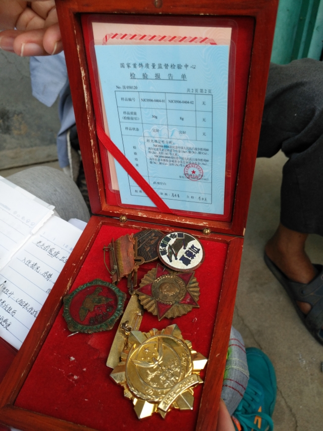 姚老前辈向志愿者展示纪念章
