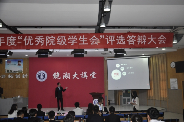 为总结和展示各学院学生会一年的成果,6月4日下午,各学院学生会在镜湖大讲堂进行年度评优答辩大会,并由校学生会各主席和各学院主席共同担任本次答辩评委。