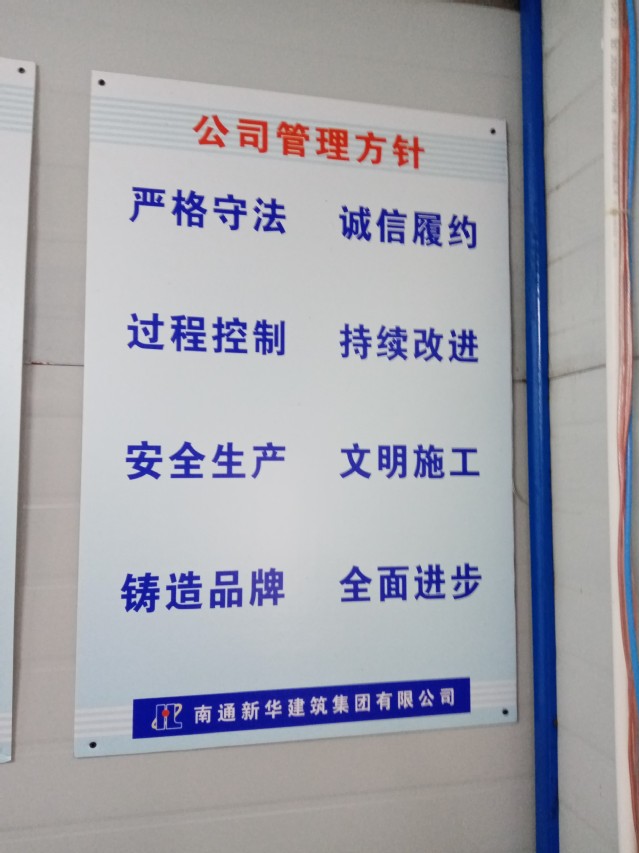 “没有规矩,不成方圆”,标准体系的完善是确保企业管理各项工作正常开展的基础,是推进产品开发、提高产品和服务质量、优化生产经营管理、加速技术进步和提高经济效益的标准化指导性技术文件,也是指导生产经营管理水平的全面蓝图。因此,南通新华建筑集团有限公司有着自己在质量、环境、管理、职业健康安全方面的工作方针,并在日常工作中严格贯彻。