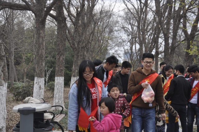 下午两点,志愿者们带着米、面、油等必需品,来到启聪聋哑学校,赠送给学校运营者,用于孩子的伙食。随后,志愿者们在负责人的带领下,来到淮海战役纪念塔,与孩子们见面。虽然孩子们只会咿咿呀呀不会说话,但活泼的天性使孩童很快与志愿者们熟悉起来,紧紧跟着他们四处参观。同时,16-5团支部的同学们也十分关心孩子,每个人都小心翼翼地紧跟在孩童身后,生怕他们摔倒受伤。在淮海纪念碑下合照过后,志愿者们带着孩子爬上了位于景区内的凤凰山,感受登山的乐趣,欣赏山中美景。然后,所有人下山,在纪念馆外稍作休憩。最后志愿者将孩子们送回启聪聋哑学校,与他们依依不舍地告别。