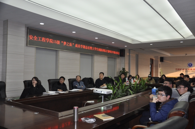 15级“梦之队”成员学期总结暨大学生创新训练动员项目申报动员会在矿业科学中心A412举行。工程中心常务副主任程远平、党委副书记钱雄、辅导员于基伯、孙婷、何伟民和全体15级“梦之队”成员参与了此次会议。