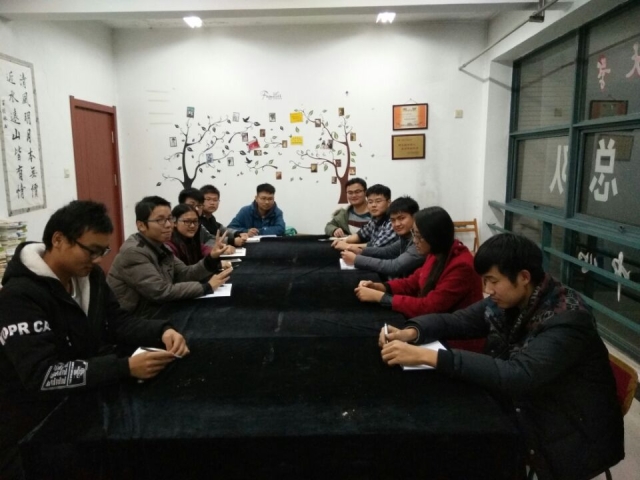 7点半会议准时开始,首先提出这次会议待解决的几个主要问题:确定各个学院的宣传、总结工作,一元计划的实行,考核,共建基地统计拓展,启动仪式流程等。各个学院参会者积极提出自己的建议,有针对性的提出解决方案。各学院分工合作,一同为活动的圆满进行出力。矿业学院负责活动宣传部分,让更多的同学参与爱心班级的活动。艺术学院则负责活动总结部分,会议还初步提出要求爱心班级体活动中每月5号前上交活动总结,作为活动后期班级评比的重要部分。力建学院则主要着手实行一元计划。作为主办方的包子漫画