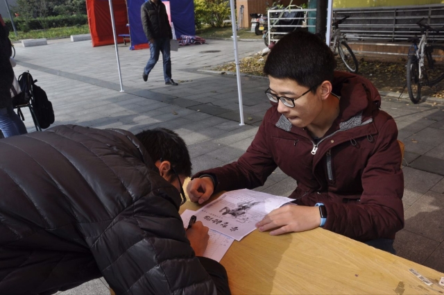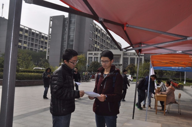 知行社成员准时到达宣传现场。知行社社长将全体人员分成三组,分别在三食堂的两个出口及宣传点处分发宣传单。工作人员发放宣传单时讲解活动具体形式内容,呼吁同学积极报名参赛。在大家的努力下,越来越多的人报名参加活动。