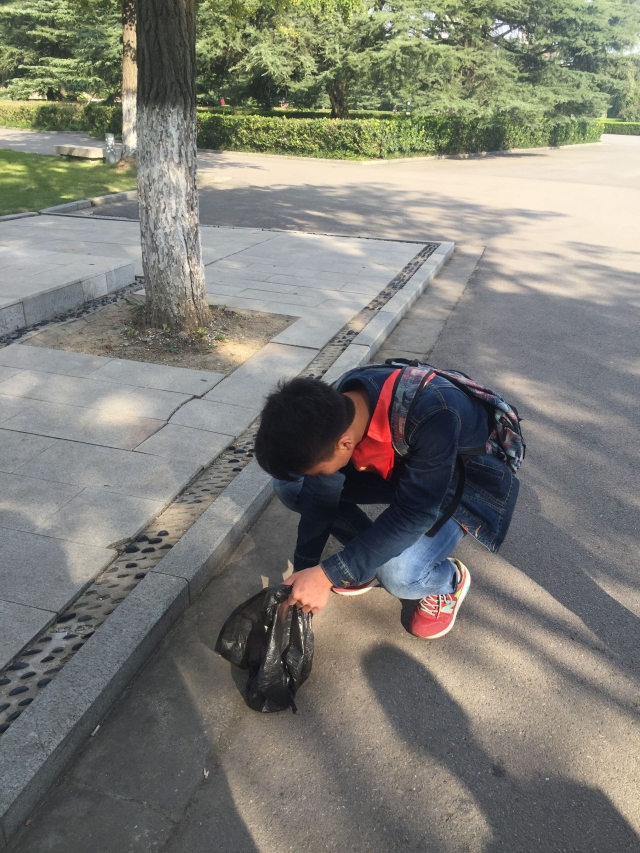 上午8点,全体志愿者佩戴绶带,携带了清洁工具到达淮海纪念塔。志愿者们向游客们宣传文明旅游,文明祭扫以及捡拾垃圾。在进行详尽的分组分工后,志愿者便很快投身祭扫工作。志愿者们细致认真地对活动地点进行了清理,不怕脏、不怕苦的态度赢得了工作人员和游客们的称赞。当日,淮海纪念塔有不少前来游玩的小学生,志愿者们耐心、生动地为孩子们讲解了淮海战役、粟裕将军和国防教育的相关知识。