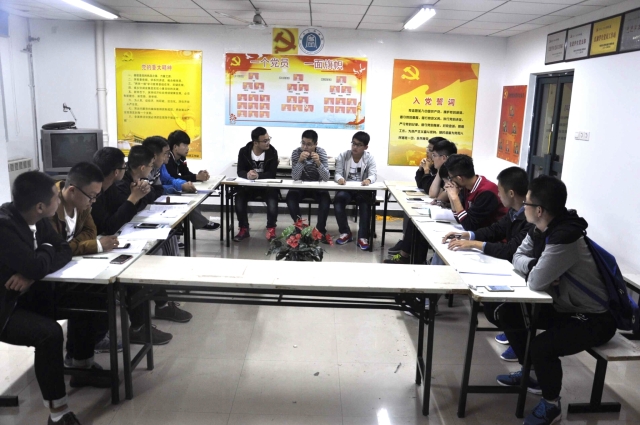 于梅三五楼党站召开班长例会,会议由辅导员何伟民和服务分队队长张帝主持,15、16级班长及服务分队悉数到会。
