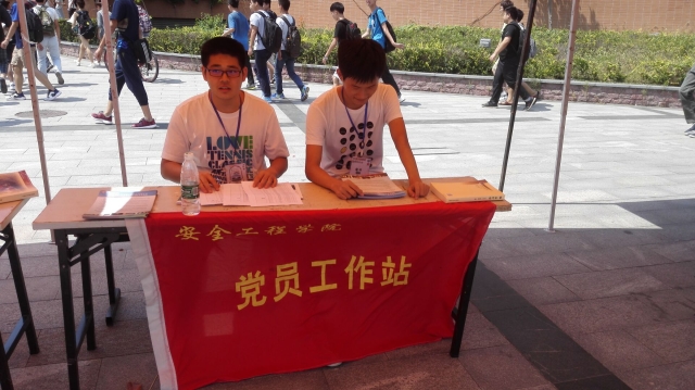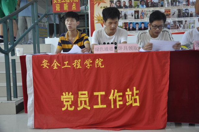 从早晨八点到下午六点,党员工作站所有成员轮流值班,保证迎新工作顺利进行。他们本着一切为新生服务的原则,配合学生会的同学,为新生和家长解答疑惑,交代他们刚入校的一些注意事项,不要轻易相信那些上门推销的人员,一定要问辅导员老师,以辨真假。帮助新生把他们的行李送到宿舍。尽管工作繁忙劳累,但学生党员们任劳任怨,勤劳能干,坚守在岗位上。