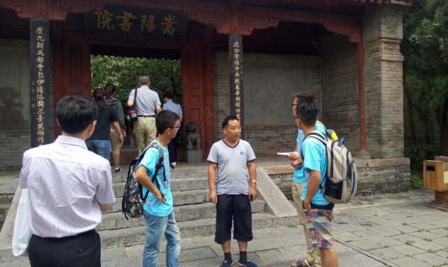 早晨9点,实践团全员到达登封市。下车后,队长张子阳便分配了任务,安排队员们前往不同地方走访调查不同对象人群。通过走访,实践团的成员们发现,即使在登封市,当地居民对于少林寺及嵩山文化了解程度也不是很高。下午两点,成员们聚集在一起,前往嵩山书院对嵩山佛道儒文化进行了解。经过4小时的路程,调研小组来到嵩阳书院。通过在嵩阳书院对游客、导游及一些工作人员进行简单的采访和调查,进一步了解了中岳嵩山是集儒、道、佛三大家五岳名山之一,其文化历史悠久,是中原文化的源头——河洛文化的重要组成部分。这些了解对于接下来的实践活动有非常大的帮助。