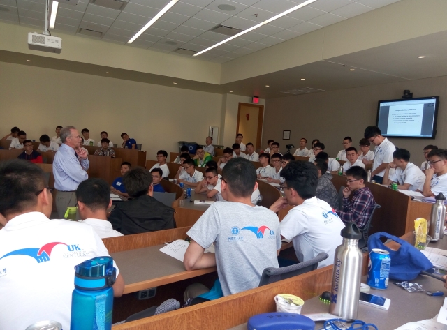 上午8时,实践团在肯塔基大学Woodward Hall 307室聆听讲座。8时至12时,肯塔基大学矿业工程学院教授Zach Agioutantis为同学们介绍采煤方法,同学们认真聆听,积极与教授进行交流。13时至16时,肯塔基大学特聘教授Ken Katen为同学们介绍美国采矿安全相关情况,Ken Katen从事矿业工作四十余年,经验丰富,将实践与理论结合,加以幽默风趣的授课方式,就美国款山安全历史及相关政策措施进行了详尽介绍。同学们积极提问,收获颇丰。16时30分,在肯塔基大学商学院副院长Nancy和指导老师戚绪尧的带领下,实践团同学们参观肯塔基赛马场,先后观看纪录片,参观博物馆并与赛马场工作人员交流,探询美国赛马历史和文化。