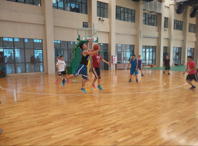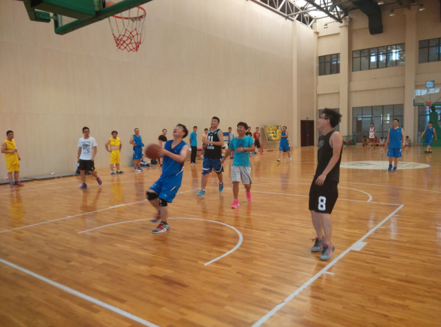队员们到场后,纷纷进行了有序的热身,4点10分,随着裁判员哨响争球,比赛正式拉开了序幕,教师代表队先发制人,充分体现了“老江湖”的娴熟老练,两次精彩的传导直达外线,一位老师接球手起刀落,皮球入框取得3分,随后大四学毕业生们不甘示弱,凭借体力优势,里突外投也有所斩获,双方你来我往,精彩的进球接连不断,四周的观众也是呼声四起。经过几节激烈地角逐,比赛结束,教师队最终成功反超比分,赢得了比赛的胜利!据悉,而虽然时值期末,又恰逢天气炎热,但经过学生会的精心筹备,此次比赛举办的相当出彩。